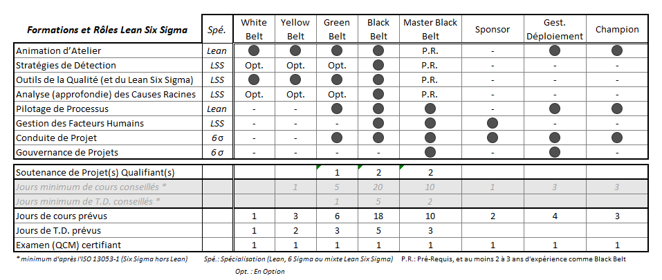 Rappel succinct des Attendus liés à un Rôle Lean, Six Sigma et Lean Six Sigma acquis.
